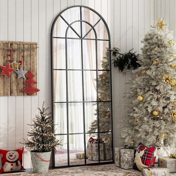 23 in. W x 65 in. H Arched Black Metal Framed Decorative Full Length Mirror Floor Mirror