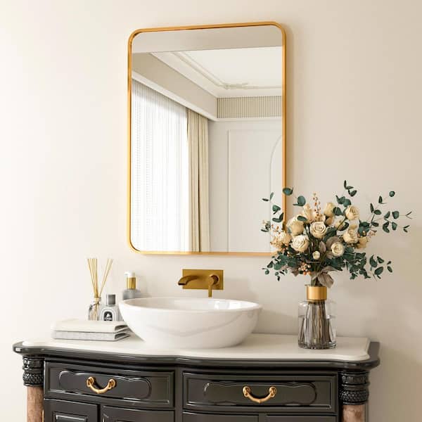 24 in. W x 36 in. H Rectangular Aluminum Alloy Framed Rounded Gold Wall Mirror