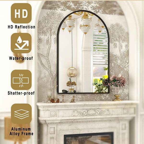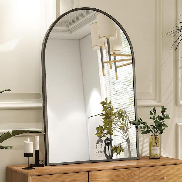 26 in. W x 37.8 in. H Arched Modern Black Aluminum Framed Bathroom Vanity Mirror Wall Mirror