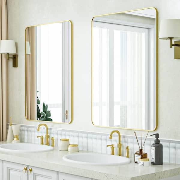 26 in. W x 37 in. H Rectangular Aluminum Alloy Framed Rounded Modern Gold Wall Mirror