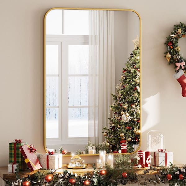 26 in. W x 38 in. H Rectangular Aluminum Alloy Framed Rounded Gold Wall Mirror