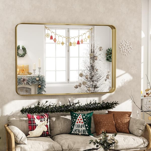 29.5 in. W x 48 in. H Modern Rectangular Rounded Gold Aluminum Deep Framed Bathroom Mirror Wall Mirror