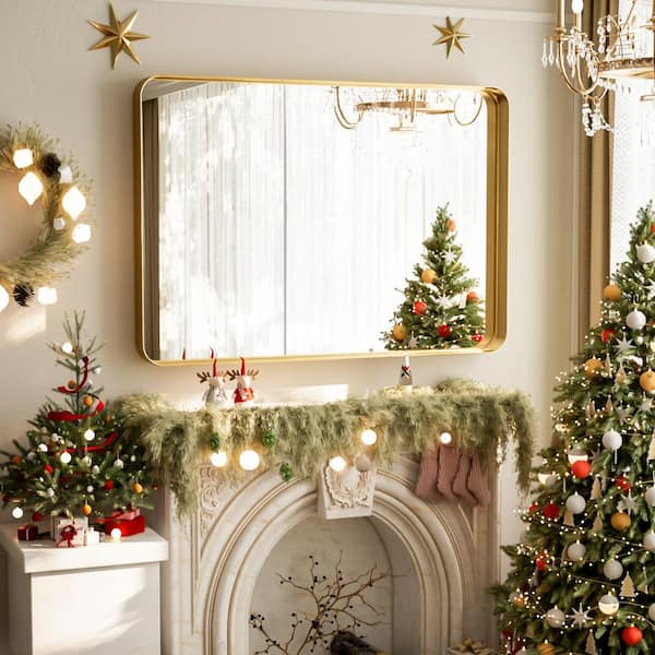 30 in. W x 40 in. H Rectangular Modern Aluminum Framed Rounded Gold Wall Mirror