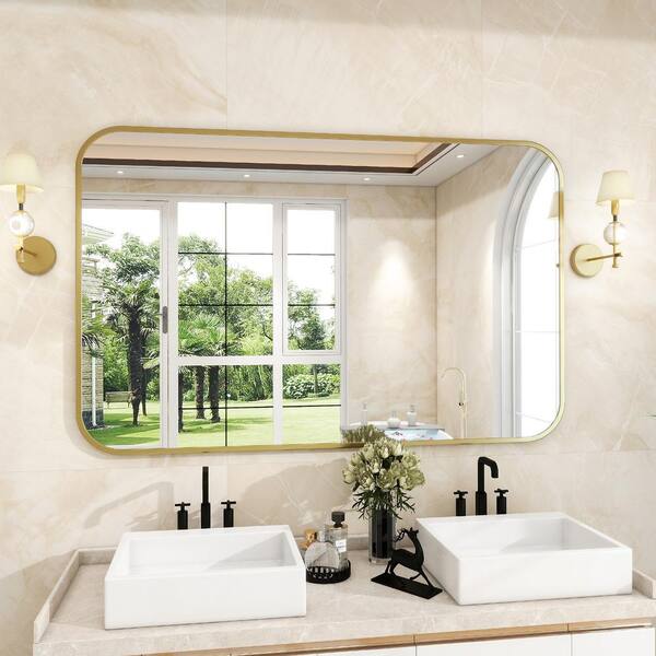 30 in. W x 47 in. H Rectangular Modern Aluminum Alloy Framed Rounded Gold Wall Mirror