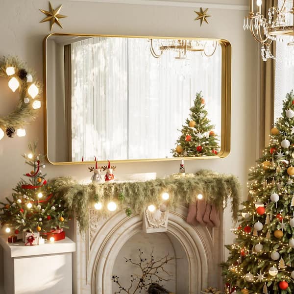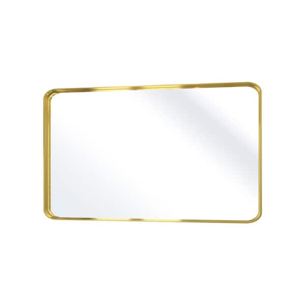30 in. W x 48 in. H Rectangular Modern Aluminum Framed Rounded Gold Wall Mirror