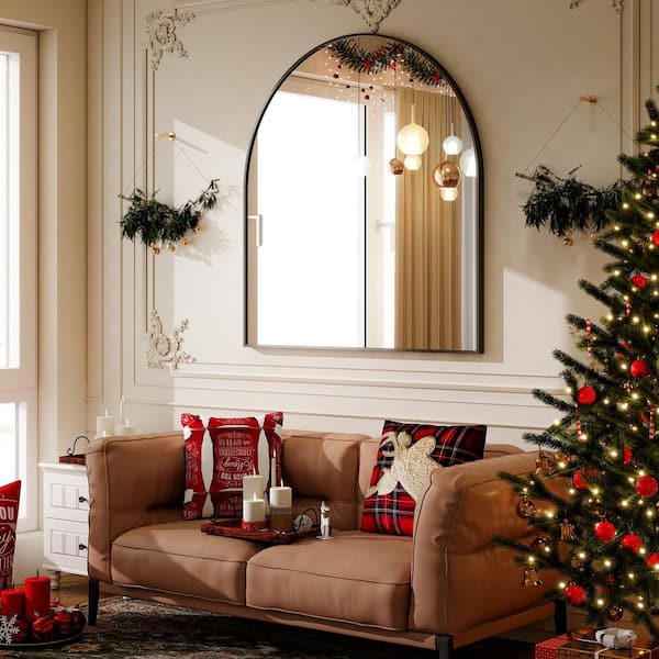 31.9 in. W x 33.9 in. H Arched Modern Black Aluminum Framed Bathroom Vanity Mirror Wall Mirror