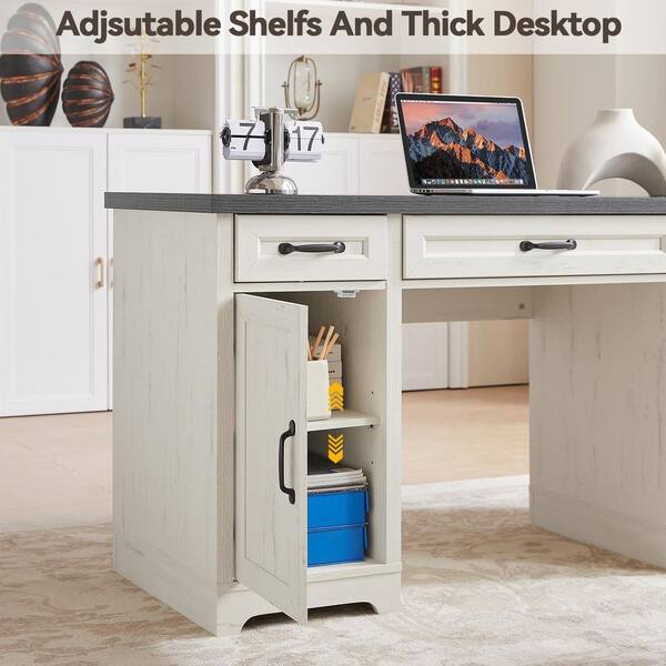 58 in. Rectangular Black Wood 5-Drawer Computer Desk with Storage, Dividers and Doors