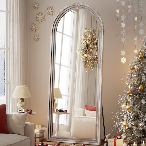 64 in. H x 21 in. W Arched Classic White Wood Framed Full Length Mirror Floor Mirror