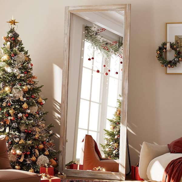 64 in. H x 21 in. W Rectangular Classic White Wood Framed Full Length Mirror Floor Mirror
