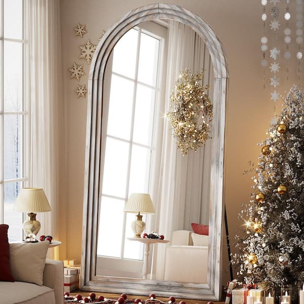 71 in. H x 30 in. W Arched Classic White Wood Framed Oversized Full Length Mirror Floor Mirror