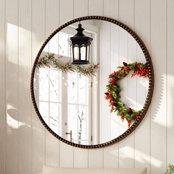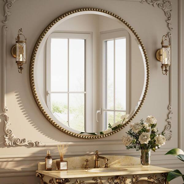 Antique Bronze 28 in. W x 28 in. H Round With Decoration Vanity Wall Mirror Polyurethane Framed Mirror