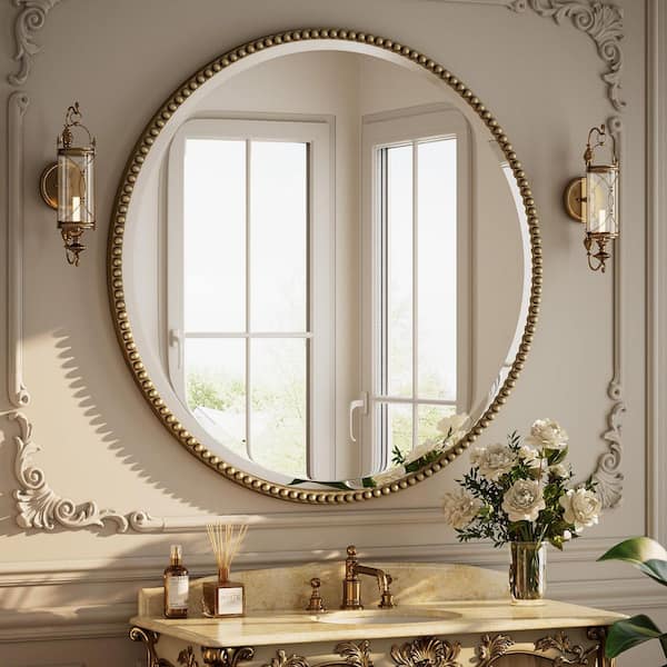 Antique Bronze 32 in. W x 32 in. H Round With Decoration Vanity Wall Mirror Polyurethane Framed Mirror