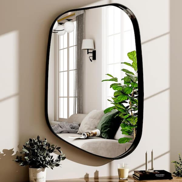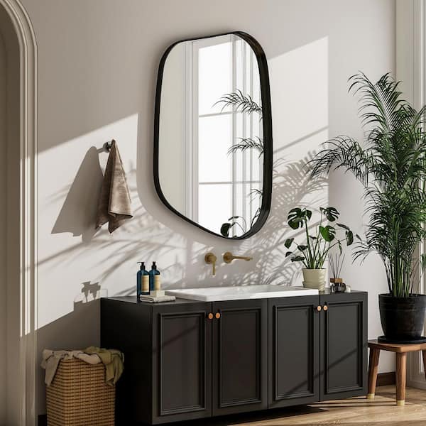 Black 24 in. W x 36 in. H Irregular Modern Aluminum Alloy Deep Framed Vanity Mirror Wall Mirror