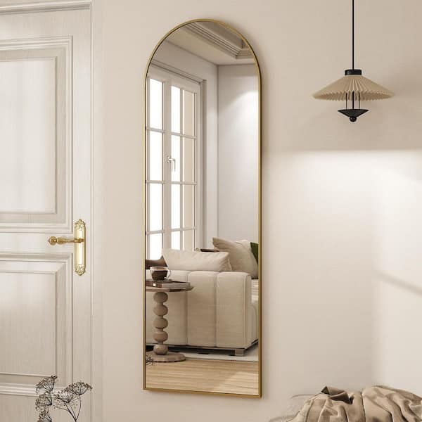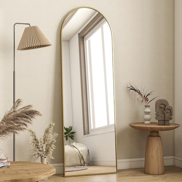 Gold 16 in. W x 59 in. H Arched Metal Framed Floor Standing Full Length Mirror