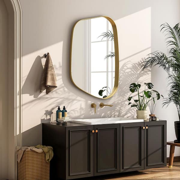 Gold 24 in. W x 36 in. H Irregular Modern Aluminum Alloy Deep Framed Vanity Mirror Wall Mirror