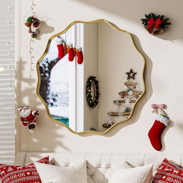 Gold 30 in. W x 30 in. H Round Modern Aluminum Alloy Deep Framed with Decorative Border Vanity Mirror Wall Mirror
