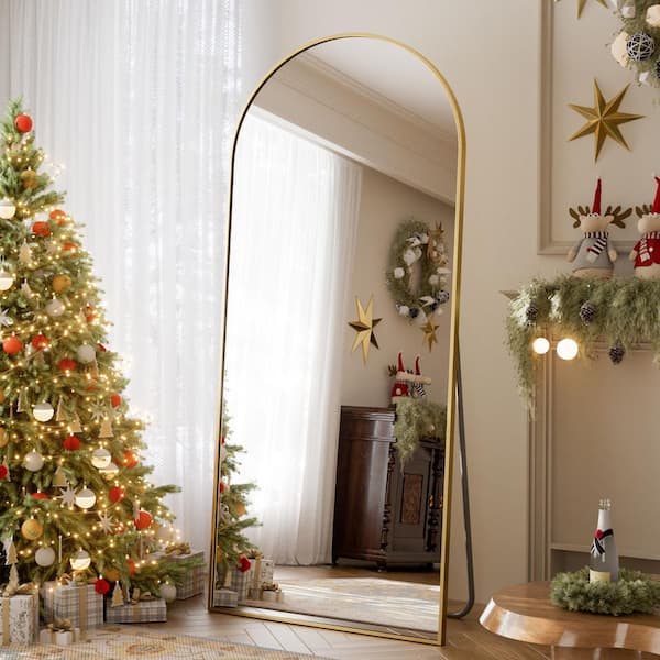 Gold 35 in. W x 78 in. H Arched Classic Aluminum Alloy Framed Full Length Mirror Standing Floor Mirror