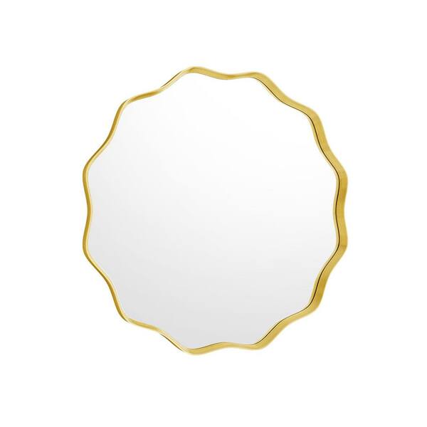 Gold 36.1 in. W x 36.1 in. H Round Wall Vanity Mirror Wavy Deep Metal Framed Mirror