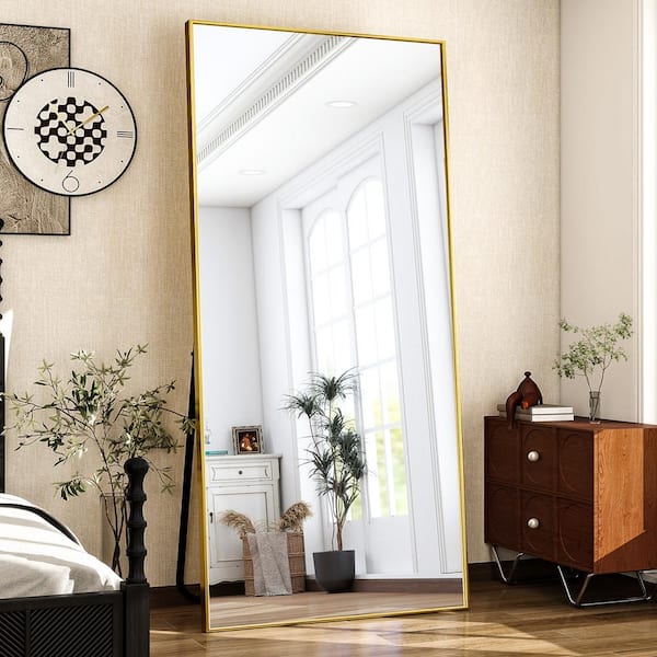 Rectangular Modern Gold Aluminum Framed Full Length Mirror Wall Mirror 29.9 in. W x 70.9 in. H