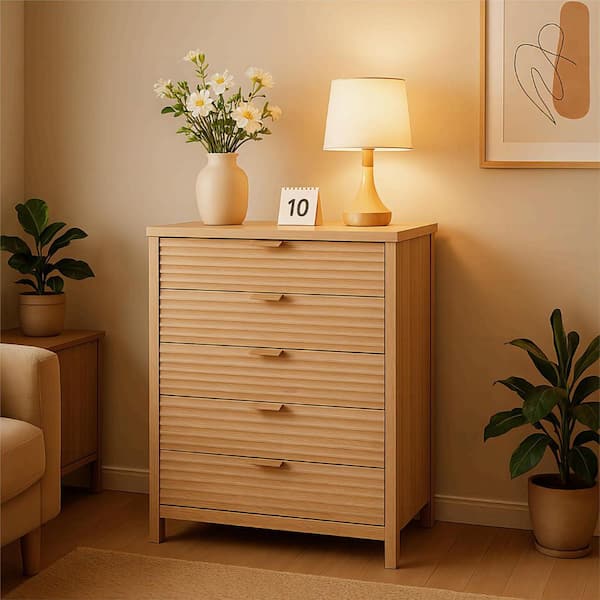 Warm Beige 5 Drawer 31.5 in. Wide Chest of Drawers
