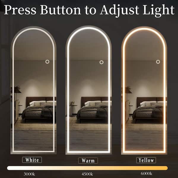 White 26 in. W x 68 in. H Arched Modern LED Full Length Mirror Floor Mirror