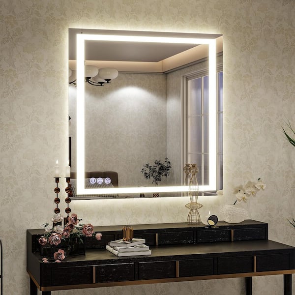 White 47 in. W x 47 in. H LED Lighted Square Bathroom Vanity Wall Mirror Metal Framed Mirror