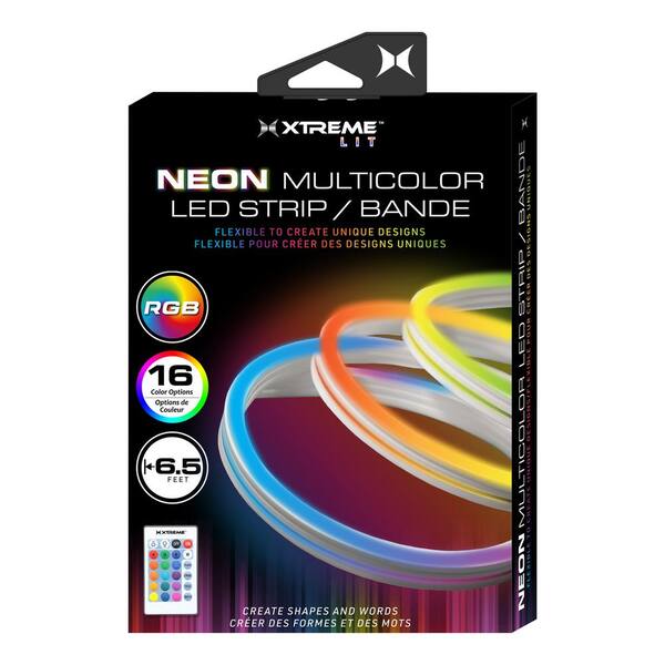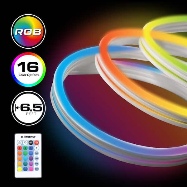 Neon Multi-Color 6.5 ft. LED Light Strip, Remote Control, 16 Colors/4 Flash Modes, Bendable For Creative Shapes