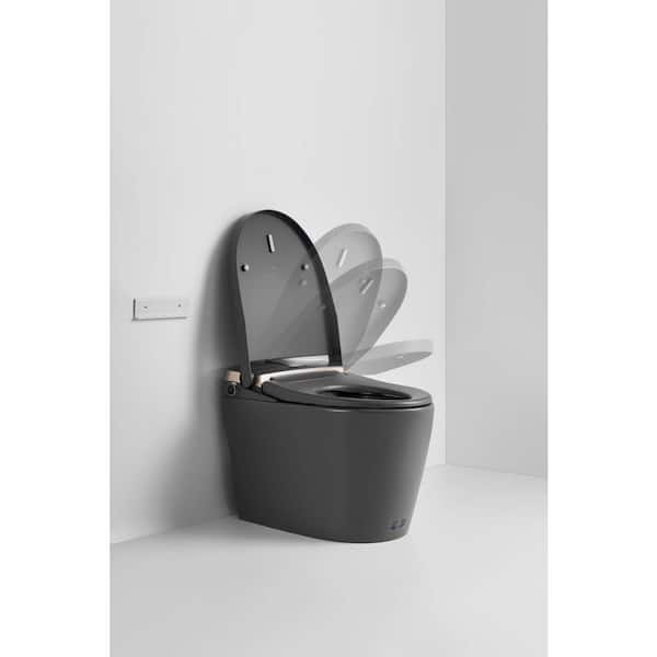 12 in. 1-Piece 1.28 GPF Single Flush Smart Elongated Toilet in Gray,Closing Seat Included/Auto Flushing/Adjustable Temp