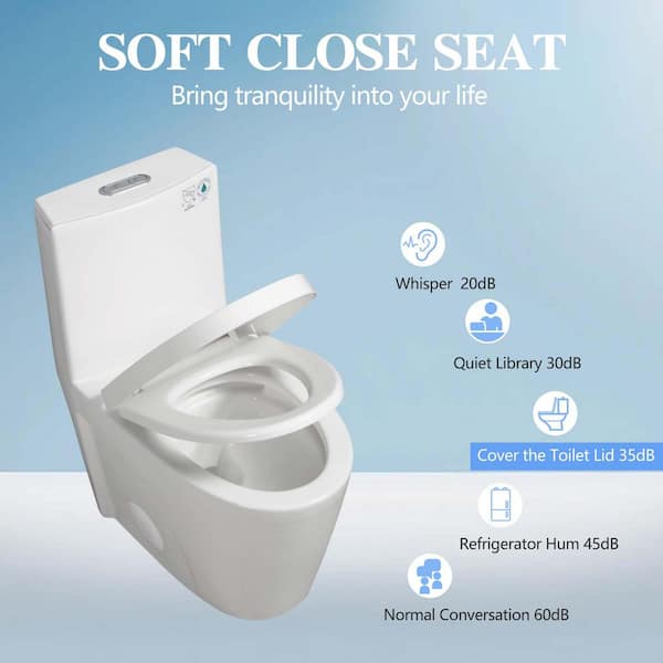 12 inch 1-piece 1.1/1.6 GPF Water-Efficient Dual Flush Elongated Toilet in White Soft Closing Seat Included