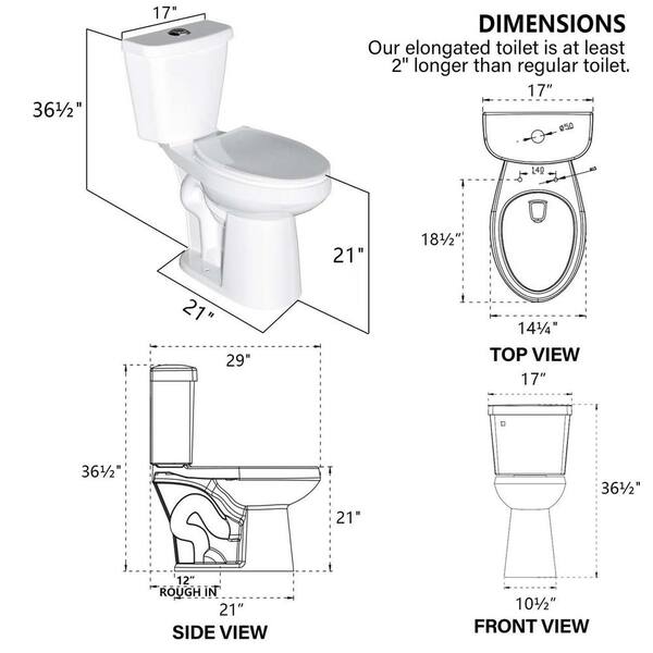 12 inch 2-piece 1.1/1.6 GPF Water-Efficient Dual Flush Elongated Heightened Toilet in White Soft Closing Seat Included