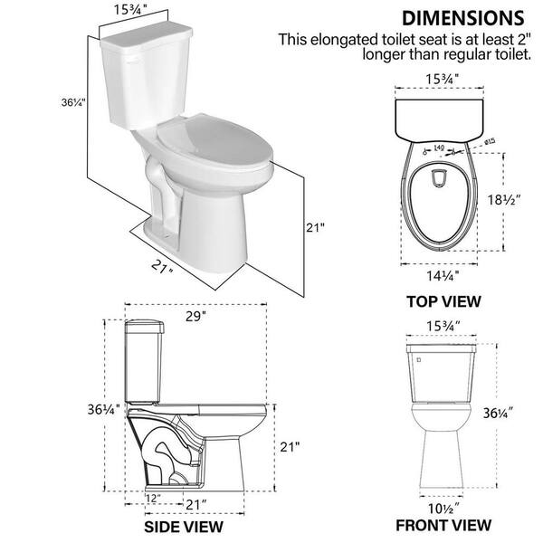 12 inch 2-piece 1.28 GPF Water-Efficient Single Flush Elongated Heightened Toilet in White Soft Closing Seat Included