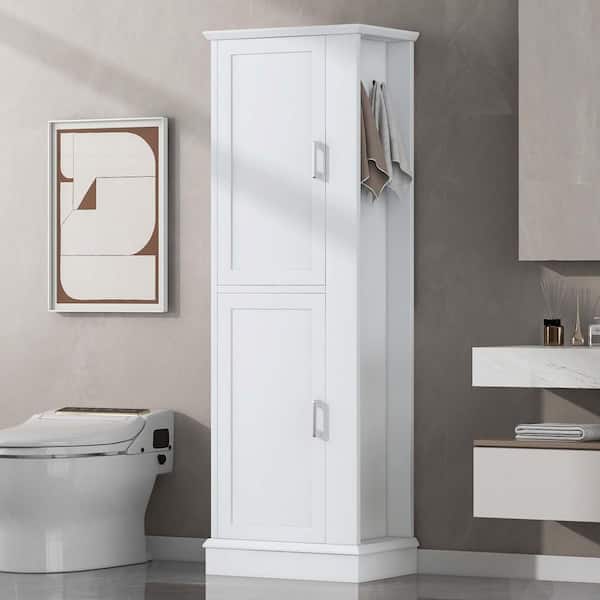 21 in. W x 14 in. D x 68 in. H White Linen Cabinet, Tall Bathroom Storage Cabinet with Hook, Adjustable Shelf, MDF Board