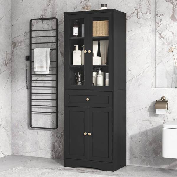 23 in. W x 15 in. D x 67 in. H Black Linen Cabinet, Tall Bathroom Storage Cabinet, Cabinet with 4-Doors and Drawers