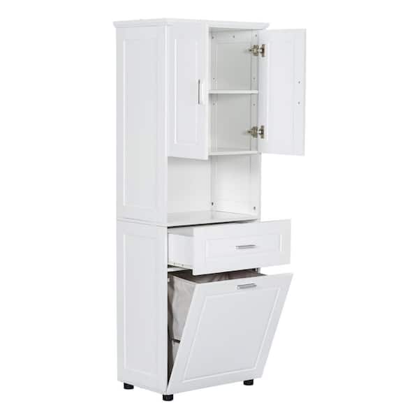 25 in. W x 16 in. D x 70 in. H White Linen Cabinet Large Storage Space Tilt-Out Laundry Hamper and Upper Storage Cabinet