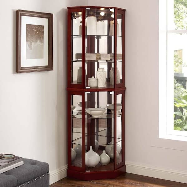 26 in. W x 20 in. D x 72 in. H Red Linen Cabinet, 6-Shelf Corner Curio Display Cabinet with Lights, Mirrors and Shelves