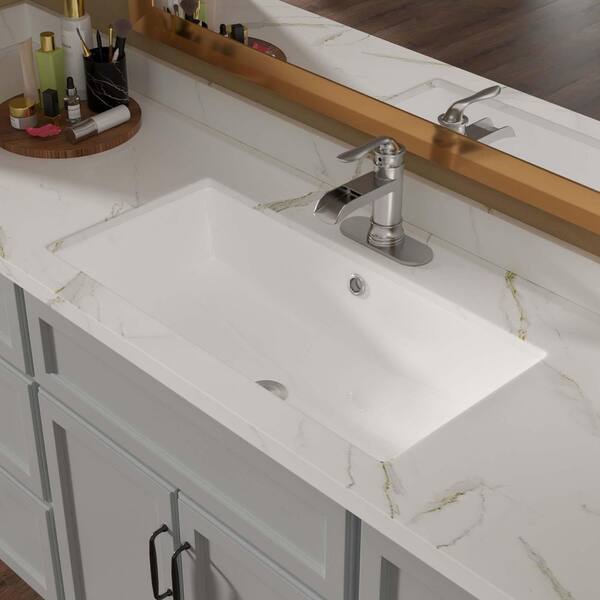 28 in. Undermount Rectangular Bathroom Sink with Overflow in White Ceramic, 28 in. x 14 in. White Ceramic Bathroom Sink