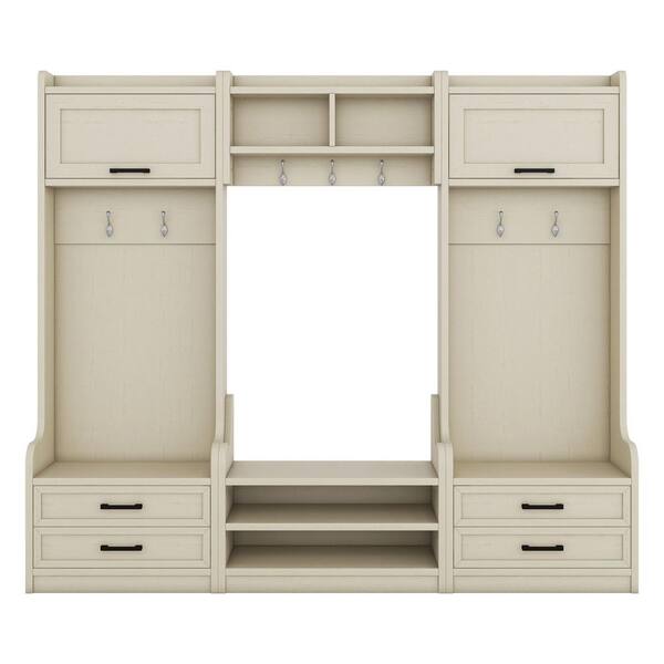 78 in. W x 16 in. D x 70 in. H Beige Linen Cabinet, 4-in-1 Detachable Hall Tree, Multiple Functions Hallway Coat Rack