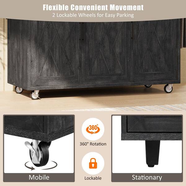 Black Wood 51 in. Kitchen Island with Geometric Twill Stripe Textured Design, Drop Leaf and Storage for Kitchen Room