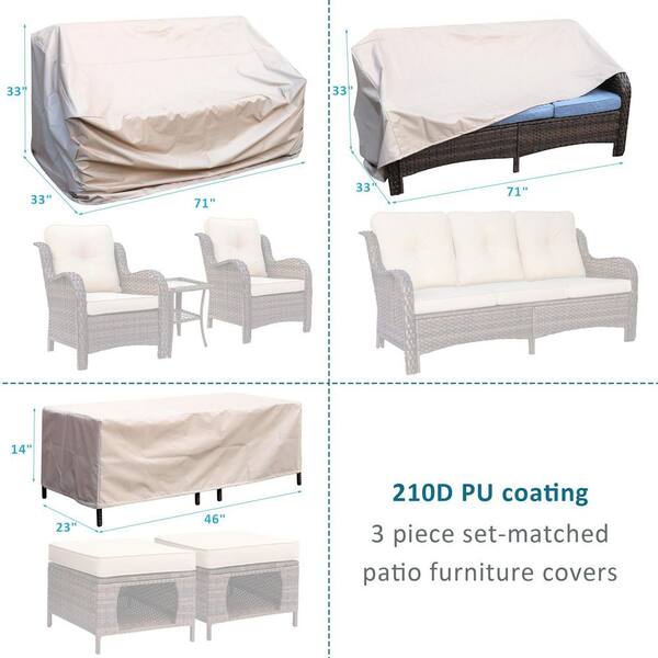 Brown 6-Piece Wicker Outdoor Patio Conversation Seating Sofa Set Beige Cushions with Ottoman and Patio Furniture Covers