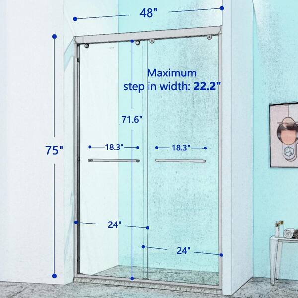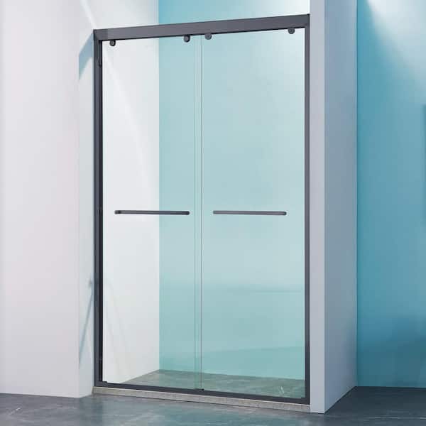 Buck 44-48 in. W x 75 in. H Double Sliding Aluminium Frame Shower Door in Matte Black with 8mm Thick SGCC Tempered Glass
