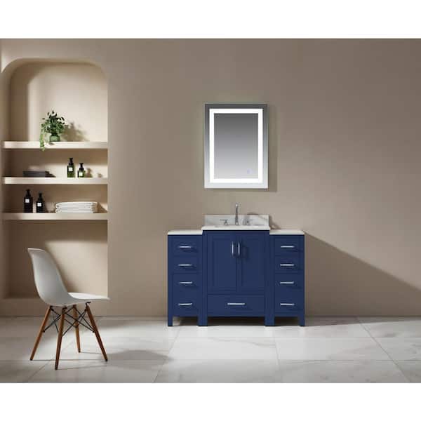 Foyil 48 in. W x 22 in. D x 34 in. H Vanity in Blue with Engineer Stone Top in White and Porcelain Underbasin in White