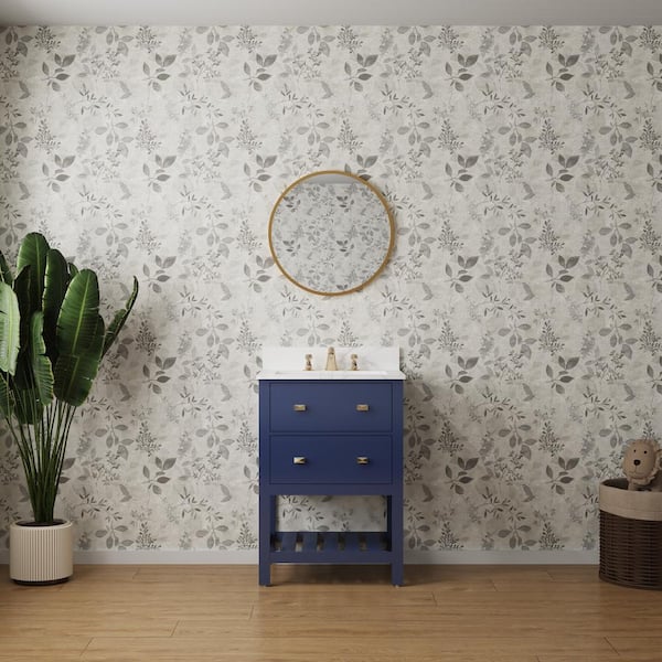 Moray 24 in. W x 19 in. D x 36 in. H Freestanding Single Sink Bath Vanity in Navy Blue with White Marble Countertop