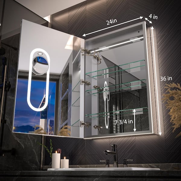 Moray 24 in. W x 36 in. H Rectangular Aluminum Recessed or Surface Mount Medicine Cabinet with Mirror and Front&Backlit