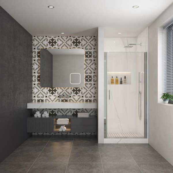 Moray 32 in. W x 72 in. H Pivot Frame Shower Door in Polished Chrome Finish with Clear Glass