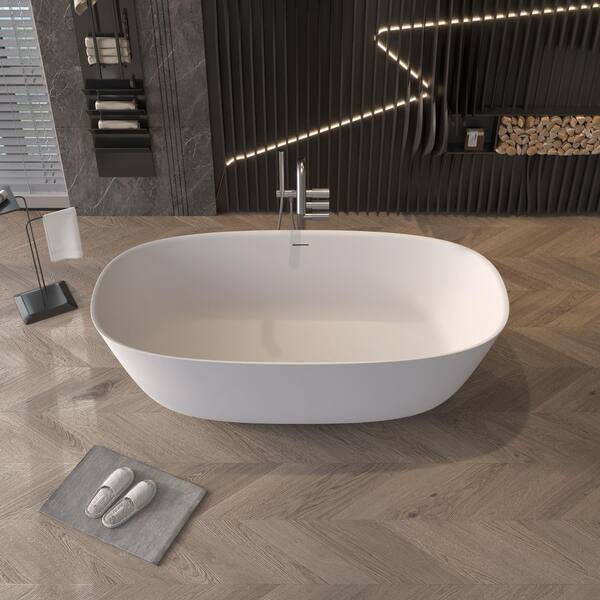 Moray 55 in. x 28 in. Solid Surface Stone Resin Flatbottom Freestanding Bathtub Soaking Bathtub in Matte White