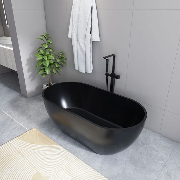 Moray 59 in. x 30 in. Solid Surface Stone Resin Flatbottom Freestanding Double Slipper Soaking Bathtub in Matte Black