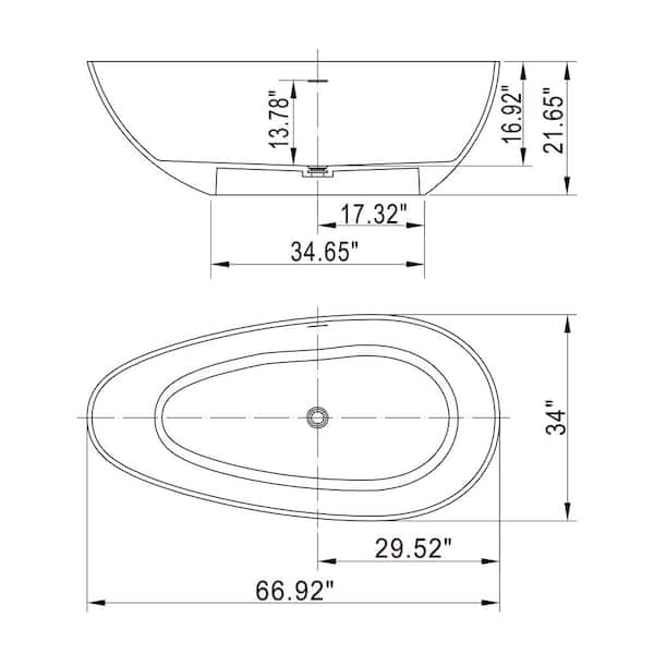 Moray 67 in. x 33.5 in. Solid Surface Stone Resin Flatbottom Freestanding Soaking Bathtub in Matte Black