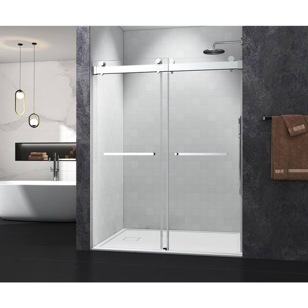 Moray 72 in. W x 76 in. H Sliding Frameless Shower Door in Brushed Nickle Finish with Clear Glass