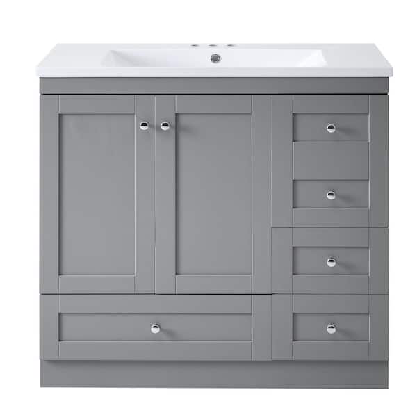 Victoria 18 in. W Freestanding Modern Design Single Sink Bath Vanity in Gray with White Ceramic Top