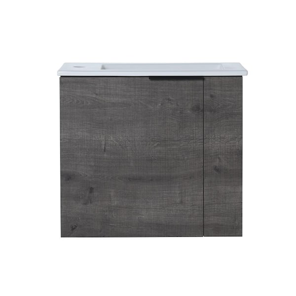 Victoria 22 in. W x 13 in. D x 20 in. H Floating Modern Design Single Sink Vanity with Ceramic Top and Cabinet in Gray